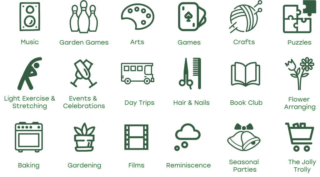 Whether it’s enjoying live performances, singing together, or simply listening to favourite records, there’s always music to suit the occasion. Residents can take part in book clubs, movie afternoons, garden games, arts and crafts, or spend peaceful time in the stunning gardens tending to plants or just relaxing.